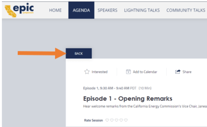 A: When a session ends, or if you decide to switch to a different breakout session, click the “Back” button to return to the agenda. You can then enter any other in progress session by clicking the “Broadcast” button for that session on the agenda.
